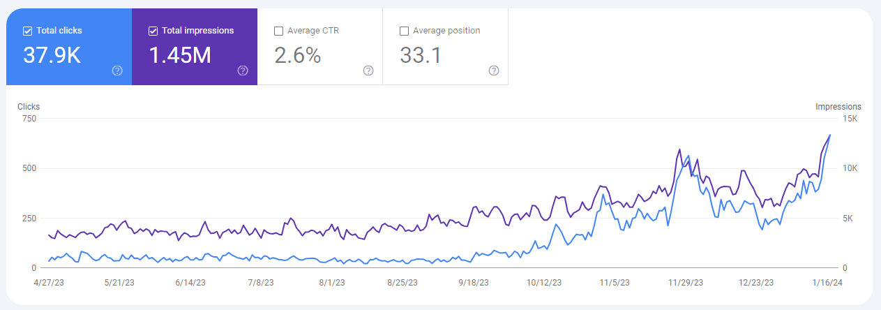 Increase in Clicks over the Last 3 Months