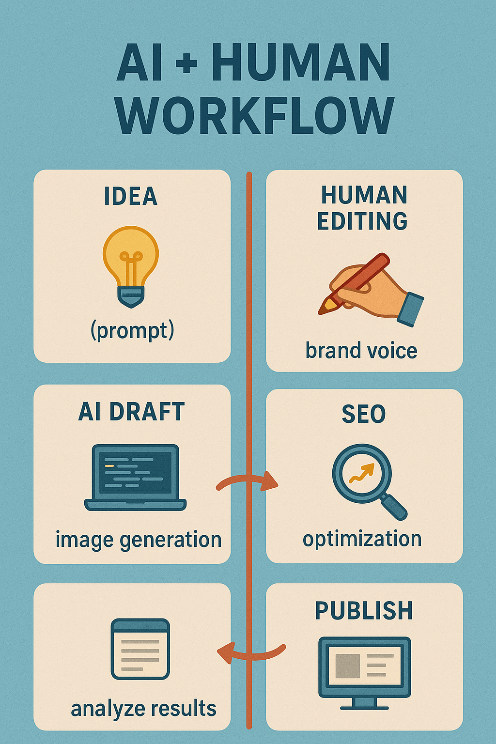 AI isn’t replacing human creativity, it’s amplifying it. Businesses that learn to combine AI’s speed with authentic human strategy will thrive. Those who dump unedited AI sludge onto their websites will fade into the noise.