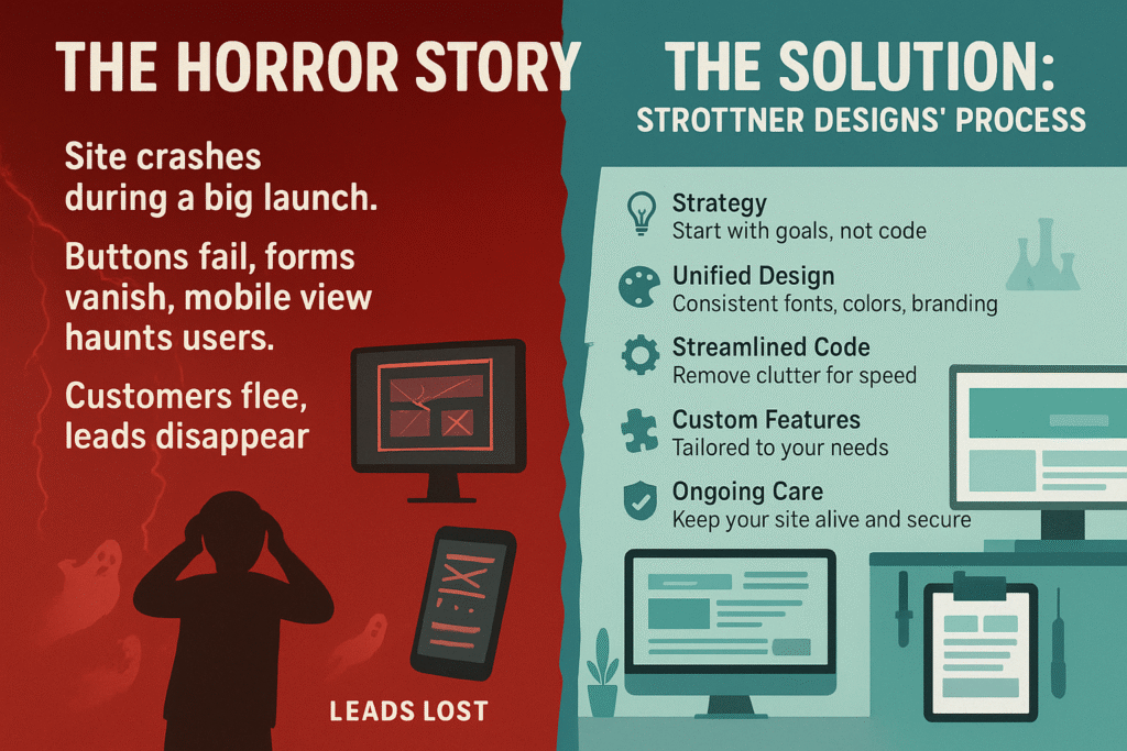 At Strottner Designs, we’ve seen our fair share of digital creatures. The good news? Every monster can be redeemed. You just need the right team, a little bit of science, and zero lightning bolts.
