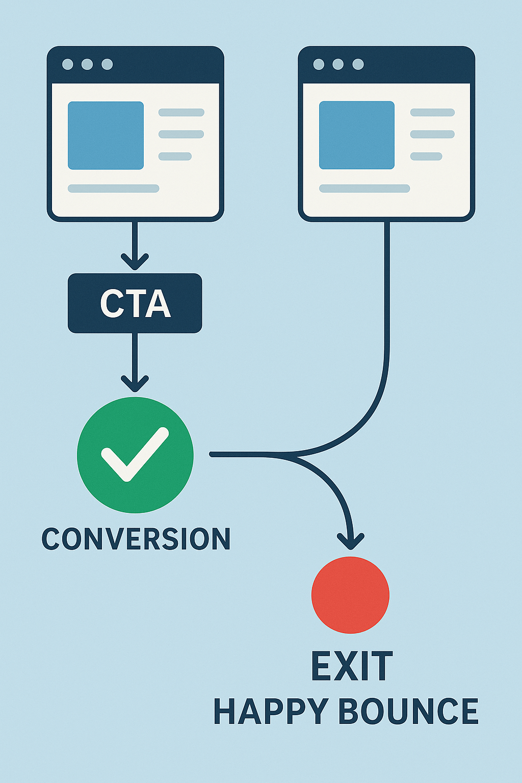 Some pages are meant to be short stops: confirmation pages, FAQs, or single-offer landing pages. A “successful bounce” is a thing.