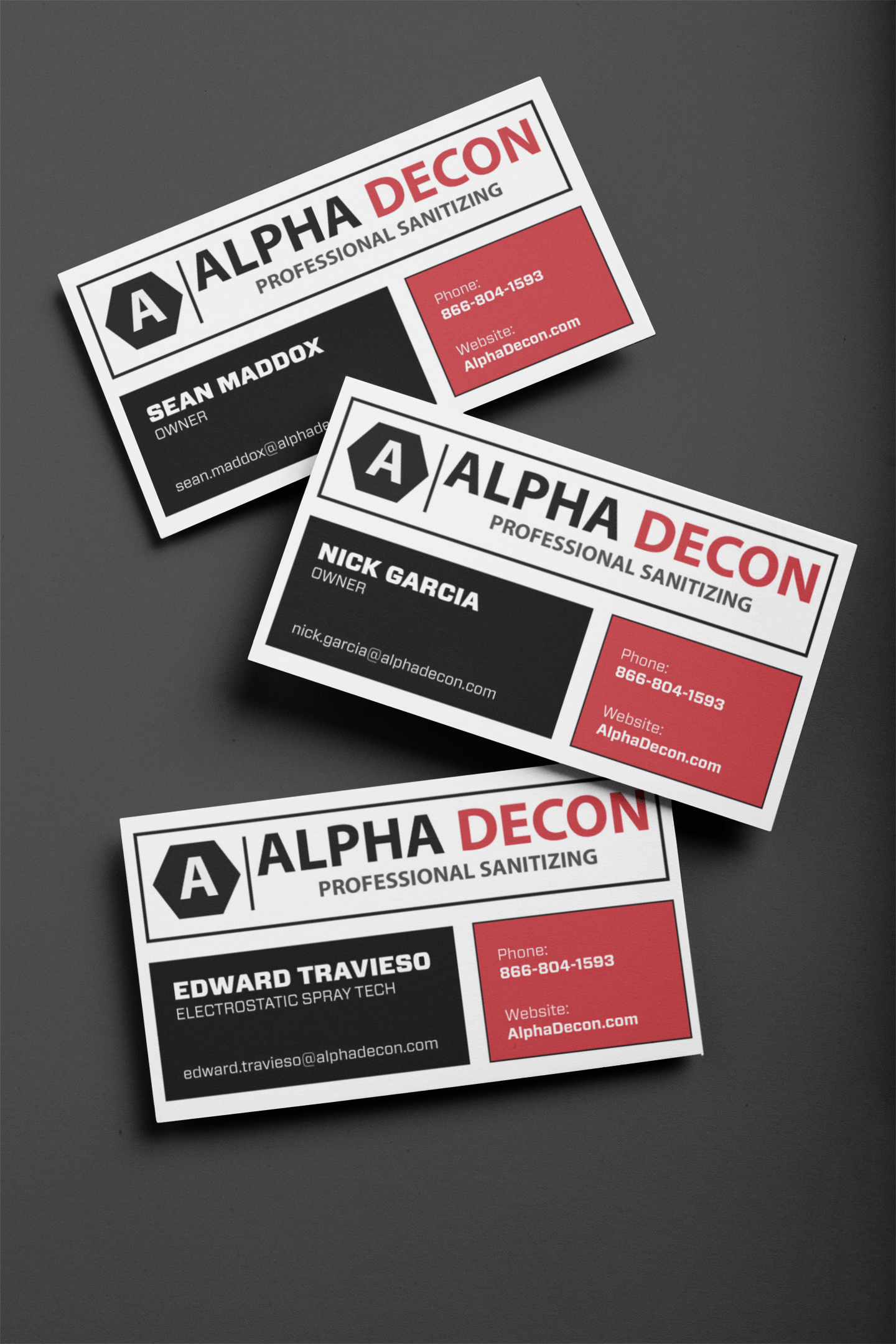 Alpha Decon is a Professional Sanitizing Services company born during the COVID 19 Pandemic. Alpha Decon came to Strottner Designs to develop their entire collateral system from business cards, to tri-fold and bi-fold brochures, as well as single page flyers.