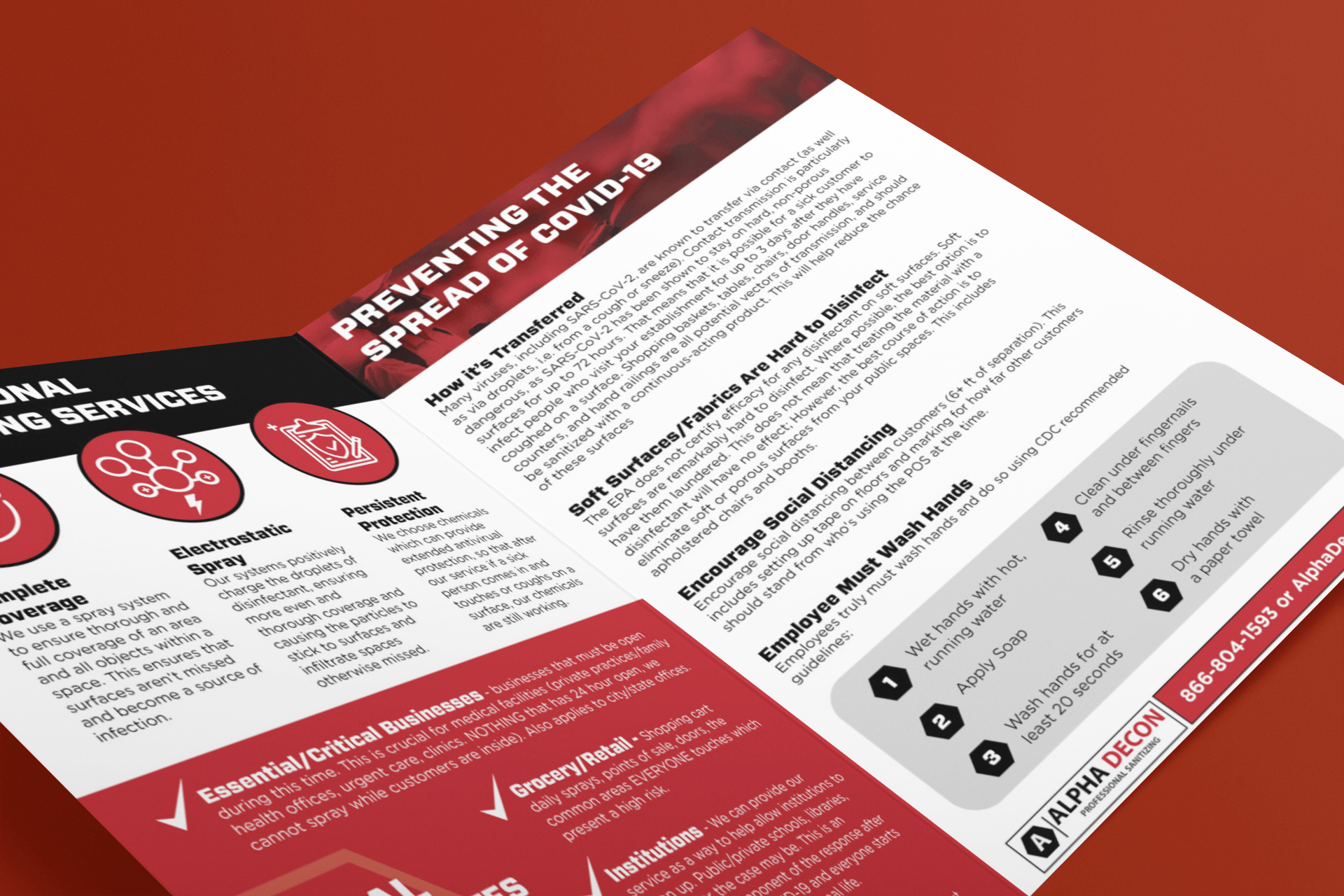 Alpha Decon is a Professional Sanitizing Services company born during the COVID 19 Pandemic. Alpha Decon came to Strottner Designs to develop their entire collateral system from business cards, to tri-fold and bi-fold brochures, as well as single page flyers.