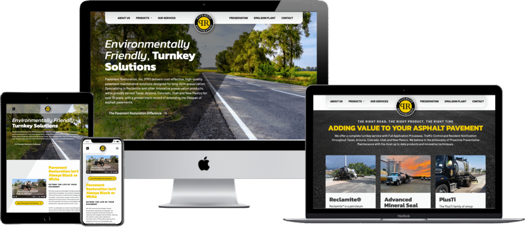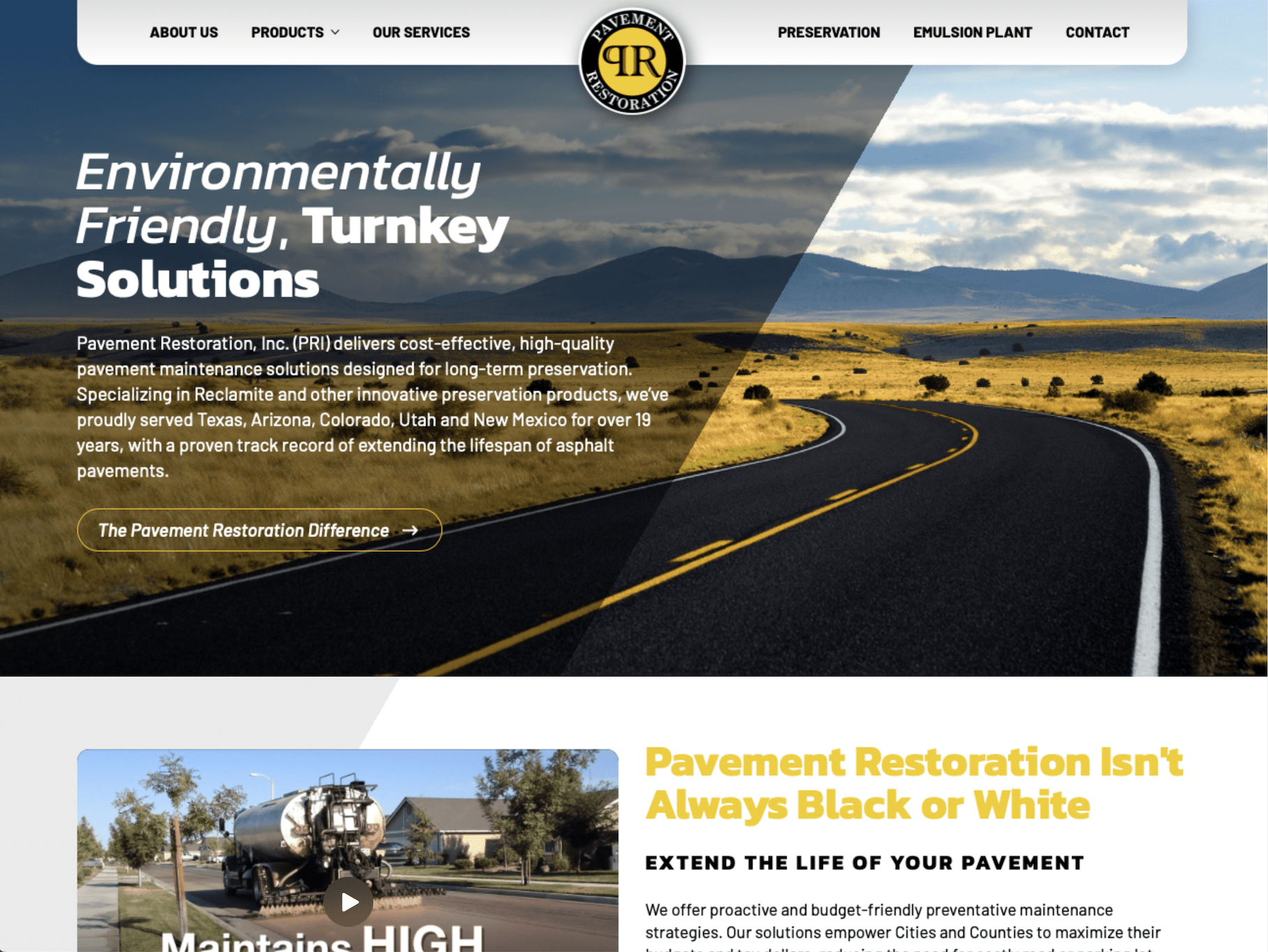 Pavement Restoration, Inc. (PRI) delivers cost-effective, high-quality pavement maintenance solutions designed for long-term preservation. Specializing in Reclamite and other innovative preservation products, we’ve proudly served Texas, Arizona, Colorado, Utah and New Mexico for over 19 years, with a proven track record of extending the lifespan of asphalt pavements. They came to Strottner Designs to build a new website that was modern, responsive and secure.