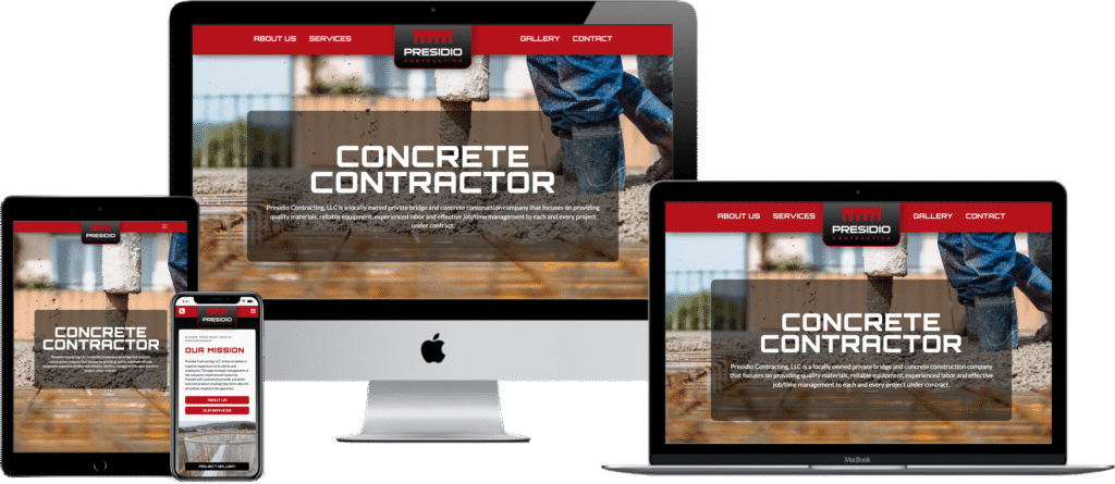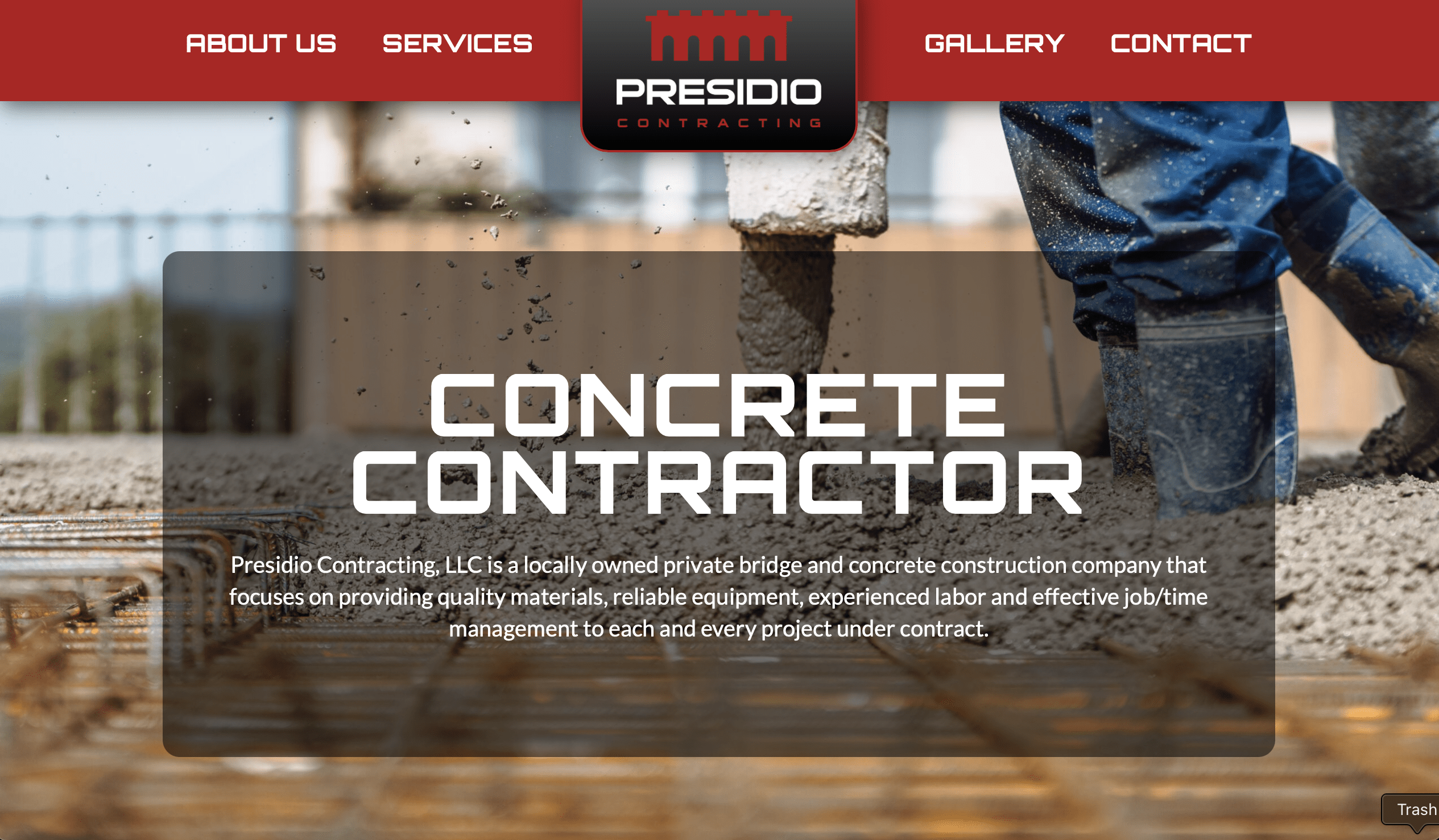 Presidio Contracting, LLC is a locally owned private bridge and concrete construction company that focuses on providing quality materials, reliable equipment, experienced labor and effective job/time management to each and every project under contract. They came to Strottner Designs for a logo and website.