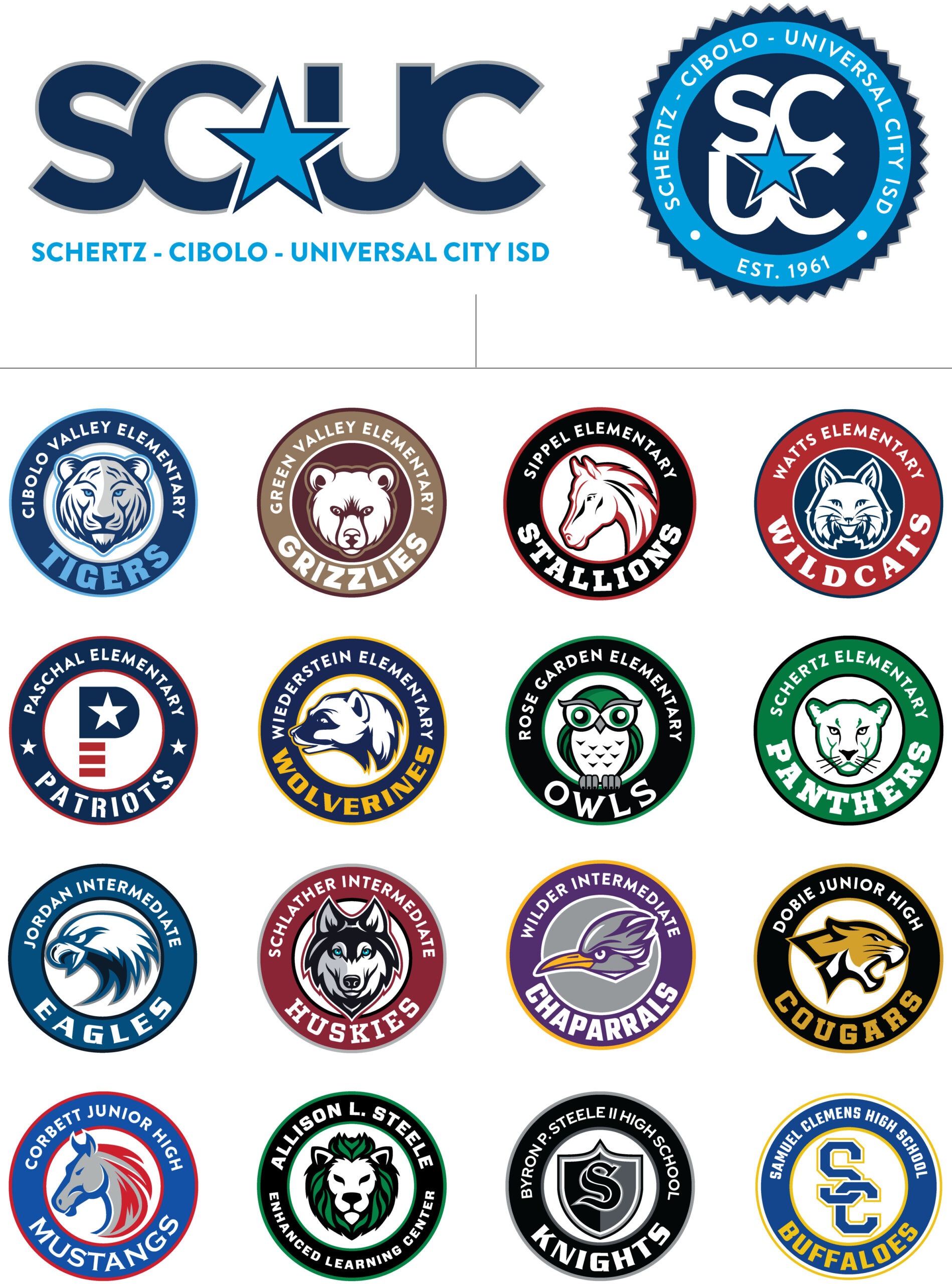 Expanding on our relationship with Schertz – Cibolo – Universal City ISD, we were tasked with designing logos for all 16 campuses that make up SCUC ISD.