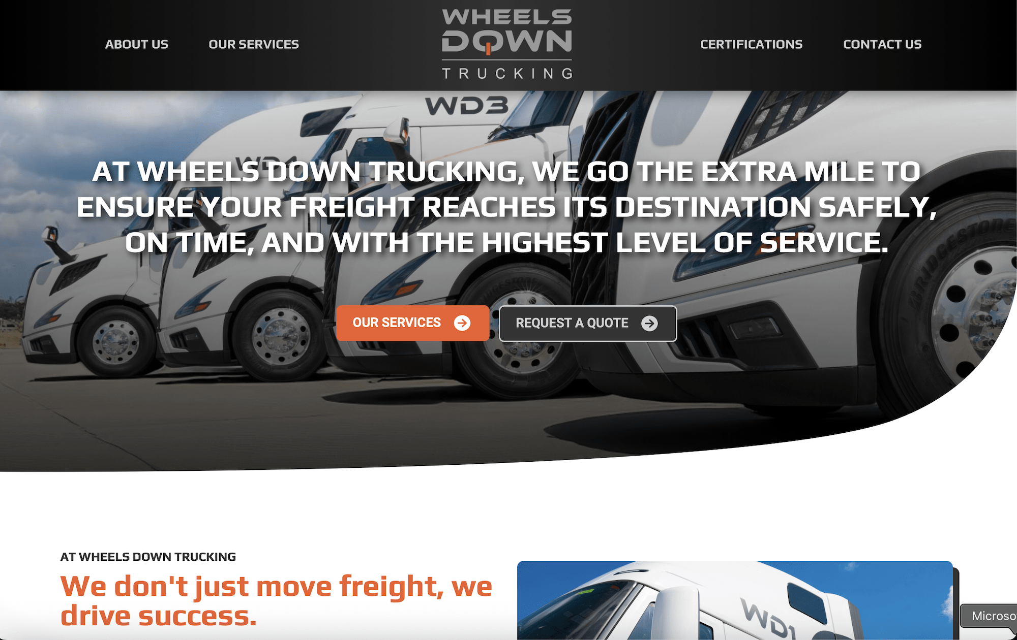 At Wheels Down Trucking, we go the extra mile to ensure your freight reaches its destination safely, on time, and with the highest level of service. They came to Strottner Designs for a website.