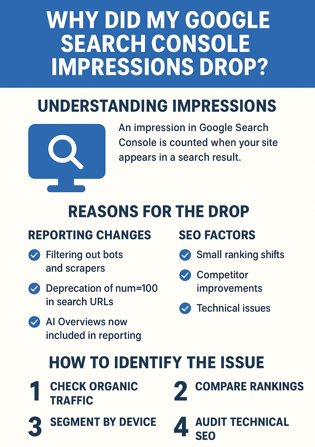If you’ve logged into Google Search Console (GSC) lately and noticed your impressions have dropped, you’re not alone. Businesses across industries—from small local shops to national eCommerce brands—are reporting sudden declines.